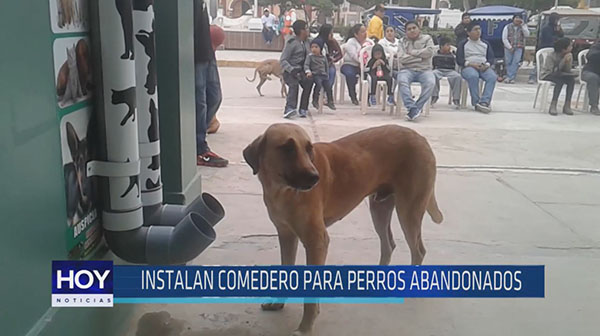 Efectivos de la comisaría del distrito de Monsefú han instalado un comedero para perritos en situación de abandono. El dispensador que tiene la forma de un tubo, hecho de plástico tiene dos contenedores: uno para agua y el otro para alimentos sólidos.