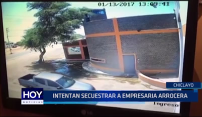 En Chiclayo, cámaras de seguridad grabaron el momento en que una banda de marcas intentó secuestrar a una empresaria arrocera. La valentía del chofer de la camioneta evitó que los delincuentes se la llevaran.