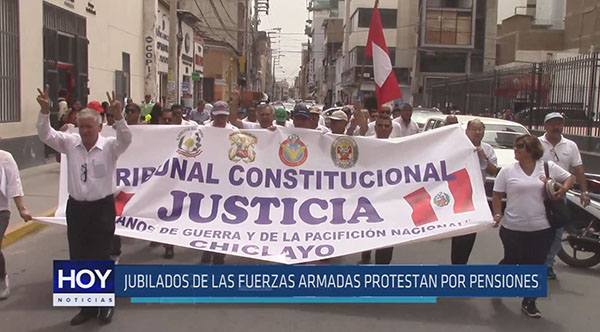 Los jubilados de las Fuerzas Armadas salieron a protestar en la calles de Chiclayo reclamando se les reconozca igual pago de pensiones que a sus compañeros que se jubilaron a partir del 2012.