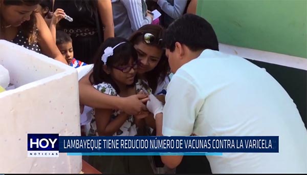 El gerente regional de Salud, Pedro Cruzado señaló que sólo se cuenta con 2500 vacunas contra la varicela, por lo que no todos los menores de Lambayeque serán vacunas. Se priorizará un estado crítico o un brote de esta enfermedad para poder aplicar esta inmunización.