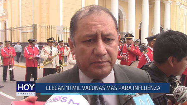 Llegaron 10 mil vacunas más contra la influenza a Lambayeque, así lo informó el Gerente Regional de Salud, Pedro Cruzado. El funcionario explicó que la primera dotación de 100 mil vacunas ya se han agotado y se viene haciendo una buena cobertura para esta enfermedad en Lambayeque.