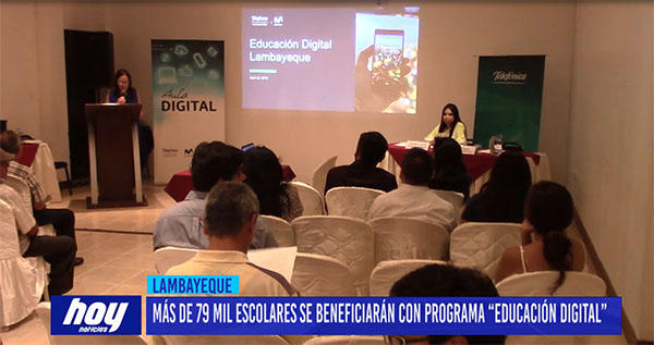La Fundación Telefónica beneficiará a más de 79 mil escolares y docentes de la región Lambayeque con su programa global “Educación Digital”, que tiene la finalidad de mejorar y enriquecer la enseñanza y el aprendizaje de niñas y niños.
