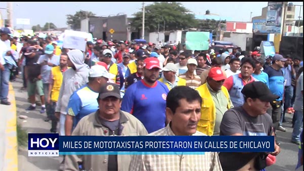 Miles de mototaxistas se movilizaron por las calles céntricas de esta ciudad y llegaron hasta el Parque Principal. Protesta masiva logró que los transportistas vayan al dialogo con el concejo municipal. Por momentos la marcha se tornó violenta.