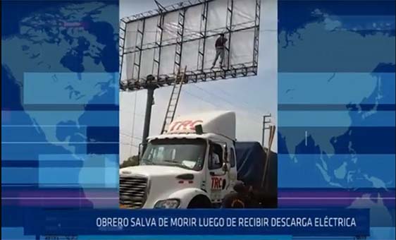 Obrero dedicado a la instalación de paneles publicitarios salva de morir luego recibir una potente descarga eléctrica cuando coloca un panel en la autopista Chiclayo-Pimentel.
