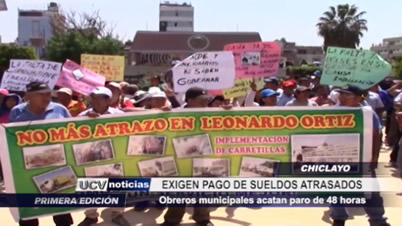 En Chiclayo, obreros municipales del distrito de José Leonardo Ortiz, acataron un paro de 48 horas exigiendo el pago de sueldos atrasados.