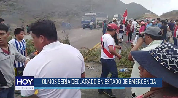 El jefe de la región policial de Lambayeque, coronel Rubén Jeri no descarto solicitar la declaratoria de emergencia en el distrito de Olmos ante el anuncio de nuevas manifestaciones en este lugar por la construcción de una nueva ciudad.