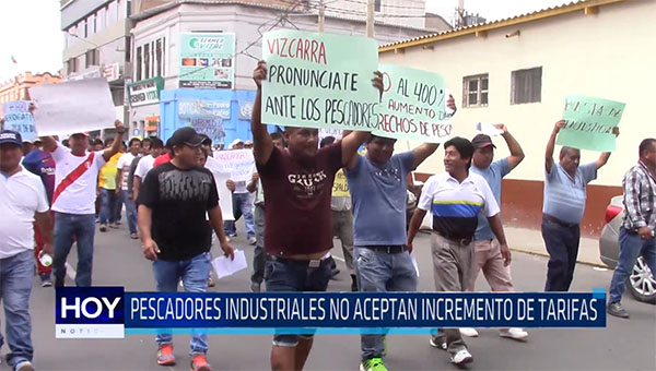 Cientos de pescadores industriales realizan una marcha de protesta por las principales calles de Chiclayo, exigiendo la derogatoria de las iniciativas gubernamentales de incrementar pago por extracción de pescado y pago de multas para poder realizar sus labores diarias.