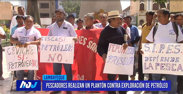 Un grupo de pescadores artesanales del distrito de Santa Rosa, realizaron un plantón en la plazuela Elías Aguirre de Chiclayo, en rechazo a la Exploración Petrolera que promueve el Poder Ejecutivo en el litoral del norte del país.