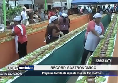 En Chiclayo se batió un nuevo récord gastronómico, pues se preparó la tortilla de raya más grande del mundo. Ésta mide 163 metros de largo.