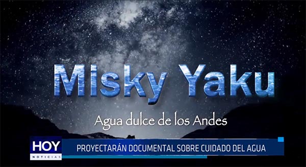 Este jueves 24 de mayo se proyectará en nuestra región el documental “Miski Yacu, Agua dulce de los Andes” que trata la problemática del cuidado de líquido elemento en nuestro país y también en el planeta.