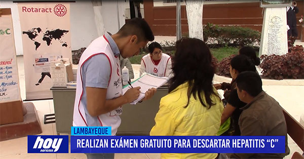 El Club Rotary de Chiclayo ha iniciado una Campaña Gratuita de Despistaje de Hepatitis C, esto será de manera gratuita en el Hospital Las Mercedes los días 15, 16 y 17 de agosto.