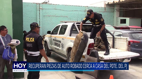 Efectivos de la Unidad de Prevención y Robos de Vehículos lograron recuperar las piezas de la unidad robada en los últimos días a pocos metros de la casa del presiente del Poder Judicial Duberlí Rodríguez.