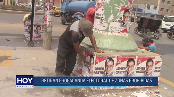 El Jurado Electoral Especial de Chiclayo comenzó a retirar la propaganda electoral de lugares prohibidos mediante operativos en conjunto con la Fiscalía de Prevención del Delito y la Defensoría del Pueblo.