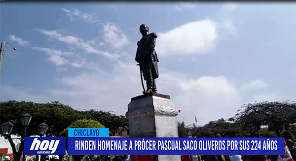 En una ceremonia especial llevada a cabo en el Parque de la Independencia, el Comité Patriótico Bicentenario y la Municipalidad de Lambayeque, rindieron un justo homenaje al Prócer de la Independencia de Lambayeque, Pascual Saco Oliveros, quien nació un 16 de mayo de 1795, exactamente hace 224 años en la Ciudad Evocadora.