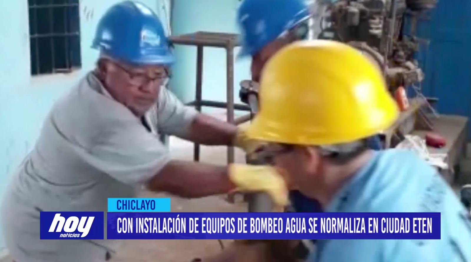 Tras cinco días de corte de agua en la ciudad de Eten, se concluyó con la instalación de los equipos de Bombeo del Pozo Tubular Nº 01 que suministra de agua potable al distrito. El suministro se estará normalizando desde el primer turno del martes 14 de mayo.