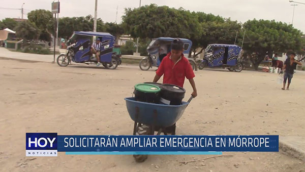 Autoridades lambayecanas solicitarán la ampliación del estado de emergencia en Mórrope ante la presencia de plomo en once pozos de agua para consumo humano. Son un promedio de once mil pobladores los que se ven afectados con este nuevo problema en el mencionado distrito.