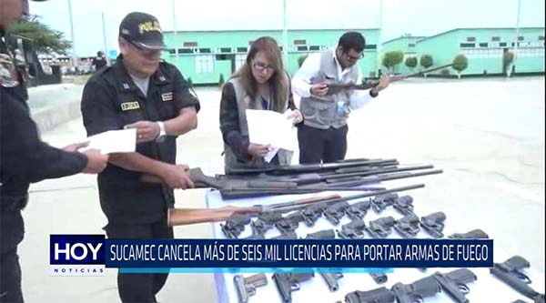 El intendente regional de Sucamec Jorge Calmet, señaló que desde mayo del 2017 a la fecha se han cancelado más de seis mil licencias para portar armas de fuego en nuestro departamento. Se realizan las investigaciones para determinar si estas armas han sido empleadas en actos delictivos.
