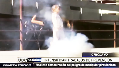 La Superintendencia Nacional de Control de Servicios de Seguridad, Armas, Municiones y Explosivos de Uso Civil (SUCAMEC) y otras autoridades realizaron una demostración de lo peligroso que resulta que un menor manipule artefactos pirotécnicos.