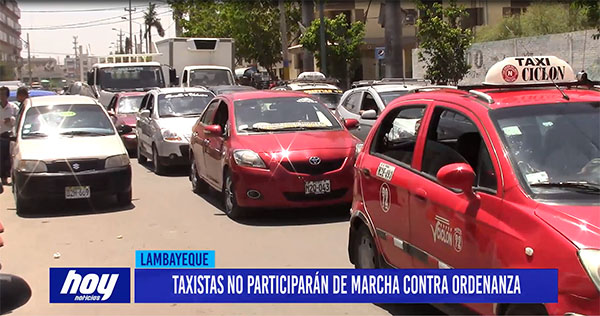 Los taxistas de la ciudad de Chiclayo, señalaron que no apoyarán la marcha anunciada por la Cámara de Comercio contra la ordenanza que autoriza la circulación de vehículos pesados a algunas calles de la ciudad, por ser política.
