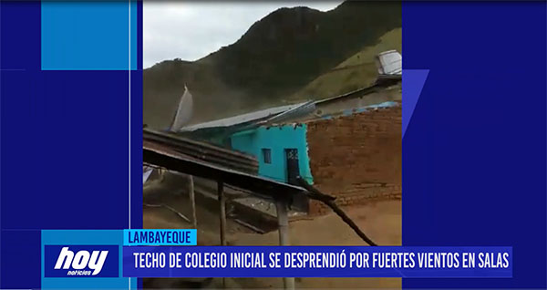 Fuertes vientos sorprendieron a los pobladores del Caserío Caracha en Salas, los cuales destruyeron los techos de calamina de un colegio inicial.