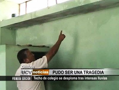 El techo de un aula del colegio Elvira García y García se desplomó sin causar víctimas. El director reveló que el estado ruinoso del local no resiste las fuertes lluvias que se producen en esta temporada.