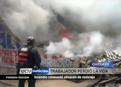 Inicio Noticias Chiclayo Chiclayo: Trabajador perdió la vida en incendio de almacén NoticiasChiclayoNacionales Chiclayo: Trabajador perdió la vida en incendio de almacén Por Tv Cosmos - 19/09/2014 646 0 FacebookTwitterPinterestWhatsApp En Chiclayo, un incendio consumió un almacén de reciclaje. Un trabajador perdió la vida. TE PUEDE INTERESAR Si te interesa nuestras noticias, puedes seguir nuestras últimas publicaciones por Facebook, Twitter, y puedes suscribirte aquí a nuestro canal de Cosmos Noticias TUITEA COMENTA Y COMPARTE Tweets by CosmosNoticiasPe Artículos relacionadosMás del autor Congreso premió a ganadores del concurso “Mujeres que Inspiran” PRIN oficializa candidatura presidencial y equipo piurano al Congreso Rospigliosi saluda a los peruanos por Navidad y ratifica compromiso con el país POPULAR CATEGORIESNoticias66232Actualidad51007Trujillo42650Nacionales9348Deportes7303Espectáculos4545 NUEVO CONSEJO DIRECTIVO ASUME LA ASOCIACIÓN NUMISMÁTICA Y FILATÉLICA DE TRUJILLO TV COSMOS - 05/03/2026 0 Congreso premiará este martes a ganadores del Concurso Nacional de Fotografía “Mujeres que Inspiran” TV COSMOS - 03/03/2026 0 Alejandro Sanz presenta el video de ‘Rimowa’ en colaboración con Elena Rose TV COSMOS - 23/02/2026 0 Jaze logra su primer sold out en México y consolida su gira internacional TV COSMOS - 23/02/2026 0 Han pasado más de 20 años y la anemia sigue afectando a más del... TV COSMOS - 19/02/2026 0 - Advertisement -