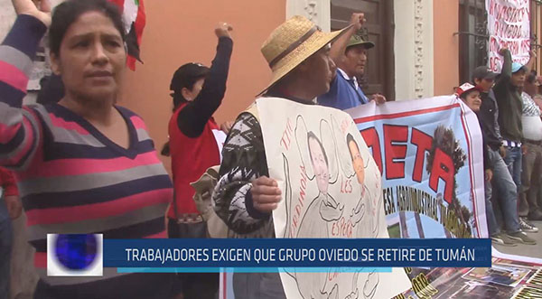 Trabajadores de la agroindustrial de Tumán volvieron a protestar en las calles de Chiclayo. Ellos piden se anule todo lo actuado por el Quinto Directorio de esta empresa ligado al grupo Oviedo y sean los trabajadores los que lleven las riendas de la azucarera.