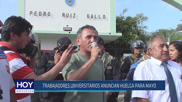 Los trabajadores de la Universidad Nacional Pedro Ruiz realizaron un paro preventivo anunciando que irán a huelga general el próximo 29 de mayo.