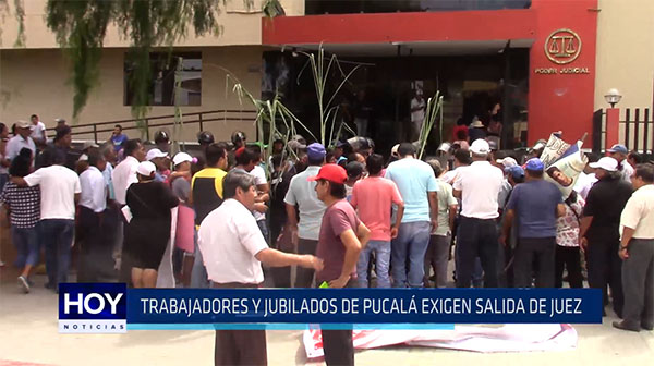 Trabajadores y jubilados de la agroindustrial Pucalá protestaron frente a la sede de la Corte Superior de Justicia de Lambayeque pidiendo la separación del juez Juan García Mayorga del caso en el que son parte afectada.