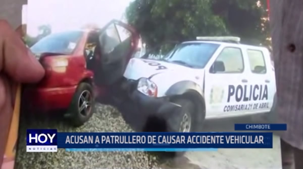 En Chimbote se registró el choque de un vehículo particular y un patrullero de la policía. Sin embargo, el chofer de la primera unidad denuncia que los efectivos, tras el accidente, retiraron su unidad sin el peritaje de rigor. Él exige la reparación de su automóvil.