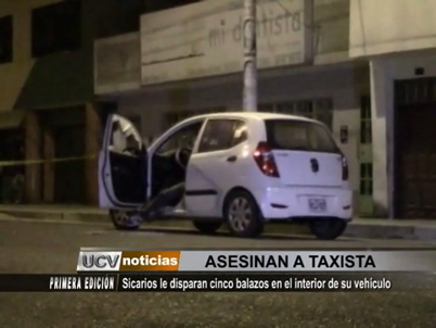 Inicio Noticias Chimbote Chimbote: Asesinan a taxista de cinco balazos en el interior de su... NoticiasChimboteNacionales Chimbote: Asesinan a taxista de cinco balazos en el interior de su vehículo Por Tv Cosmos - 05/12/2013 518 0 FacebookTwitterPinterestWhatsApp Un taxista fue asesinado en el interior de su vehículo. Según versiones, dos sujetos le habrían disparado cinco balazos. TE PUEDE INTERESAR Si te interesa nuestras noticias, puedes seguir nuestras últimas publicaciones por Facebook, Twitter, y puedes suscribirte aquí a nuestro canal de Cosmos Noticias TUITEA COMENTA Y COMPARTE Tweets by CosmosNoticiasPe Artículos relacionadosMás del autor Congreso premió a ganadores del concurso “Mujeres que Inspiran” PRIN oficializa candidatura presidencial y equipo piurano al Congreso Rospigliosi saluda a los peruanos por Navidad y ratifica compromiso con el país POPULAR CATEGORIESNoticias66232Actualidad51007Trujillo42650Nacionales9348Deportes7303Espectáculos4545 NUEVO CONSEJO DIRECTIVO ASUME LA ASOCIACIÓN NUMISMÁTICA Y FILATÉLICA DE TRUJILLO TV COSMOS - 05/03/2026 0 Congreso premiará este martes a ganadores del Concurso Nacional de Fotografía “Mujeres que Inspiran” TV COSMOS - 03/03/2026 0 Alejandro Sanz presenta el video de ‘Rimowa’ en colaboración con Elena Rose TV COSMOS - 23/02/2026 0 Jaze logra su primer sold out en México y consolida su gira internacional TV COSMOS - 23/02/2026 0 Han pasado más de 20 años y la anemia sigue afectando a más del... TV COSMOS - 19/02/2026 0 - Advertisement -