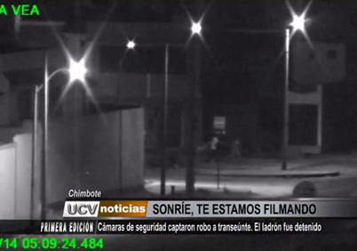 Un sujeto fue detenido por personal de seguridad ciudadana del distrito de Nuevo Chimbote, luego que fuera grabado por una cámara de video vigilancia mientras le arrebataba un celular y una billetera a un transeúnte.