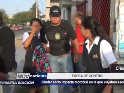 Un chofer ebrio chocó a una mototaxi en la que viajaban dos escolares. Felizmente, las colegialas sólo se llevaron el susto de su vida.