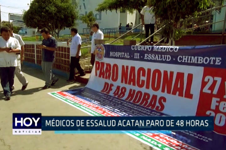 Médicos del hospital ESSALUD acatan paro de 48 horas en demanda de nueva escala salarial. Debido a medida de lucha más de 600 citas en consultorios externos fueron suspendidas en primer día de paralización.