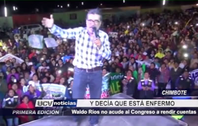 El gobernador regional de Áncash, Waldo Ríos, justificó su ausencia en el Congreso por estar enfermo; sin embargo, participó de una celebración con autoridades de Chimbote.