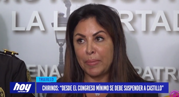 La tercera vicepresidenta del congreso, Patricia Chirinos, en su visita a la ciudad de Trujillo pidió la vacancia o suspensión de Pedro castillo, esto tras sostener una reunión con el general de la III Macro Región Policial La Libertad. La legisladora por avanza país, mencionó que desde el congreso mínimo deben pedir la suspensión de castillo terrones.