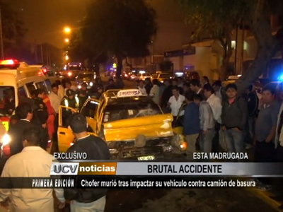 Un taxi impactó con la parte posterior de un recolector de basura. Producto del accidente, un trabajador del SEGAT resultó herido y el chofer del taxi falleció. El hecho se registró esta madrugada en la avenida Larco.