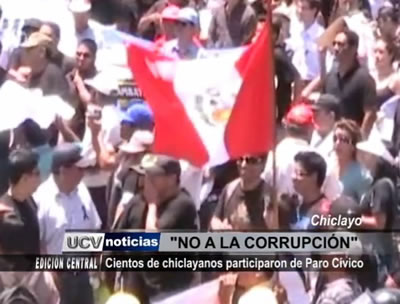 Sectores empresariales, gremios sindicales y la población organizada participaron en una multitudinaria marcha por las calles de Chiclayo para rechazar la corrupción en todos los niveles.