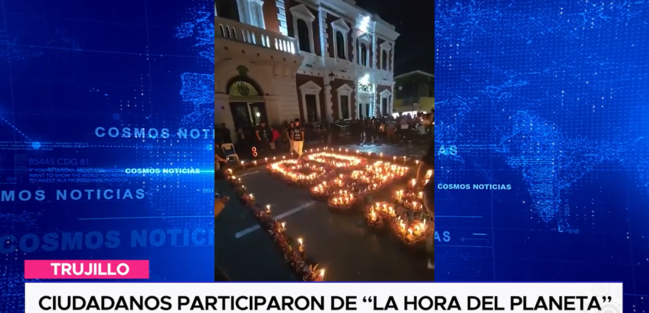 Diferentes entidades y público en general participaron en medio de mucha algarabía de la hora del planeta en los exteriores de la municipalidad de Trujillo.