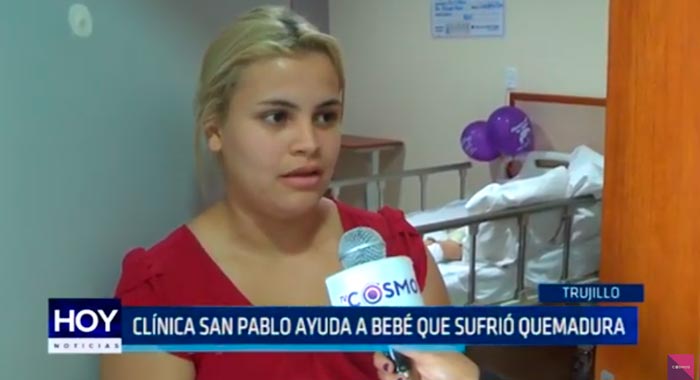 La clínica San Pablo de Trujillo, ayudó a un bebé de nacionalidad venezolana de un año de edad a quien le cayó agua hirviendo en el rostro.