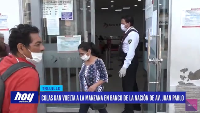 Una inmensa cola de ciudadanos se pudo verificar en los exteriores de la agencia del Banco de la Nación de la avenida Juan Pablo II, que incluso daba la vuelta a la manzana.
