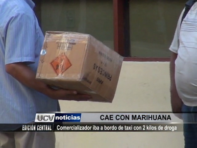 La policía capturó a un comercializador de drogas que llevaba dos kilos y medio de marihuana. Este sujeto fue capturado a bordo de un taxi en el sector Buenos Aires. Junto a él fue detenido el conductor de la unidad a quien se investiga para comprobar su participación en el delito de tráfico ilícito de drogas.