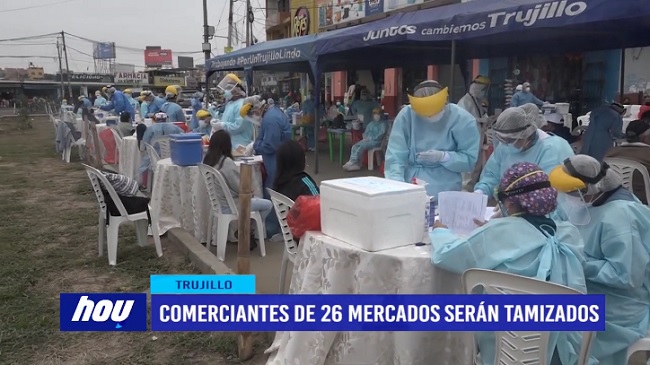 La gerencia regional de salud de La Libertad, ha emprendido una campaña de tamizaje y pruebas moleculares a comerciantes de 26 mercados de la región. Además, hoy se dio inicio en el mercado mayorista.