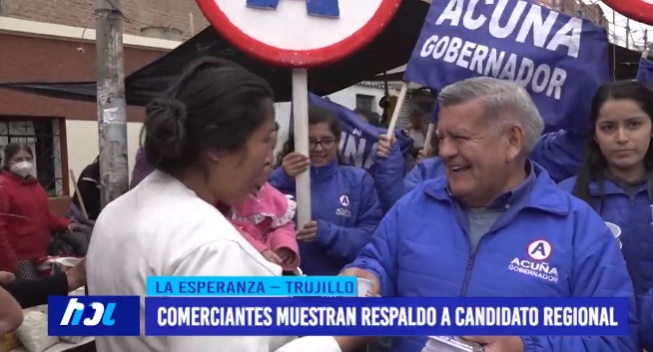 El candidato regional César Acuña Peralta llegó hasta el mercado Jesús de Nazareth en el distrito de La Esperanza en donde fue recibido por comerciantes y clientes quienes se animaron a bailar al ritmo de la banda de músicos.