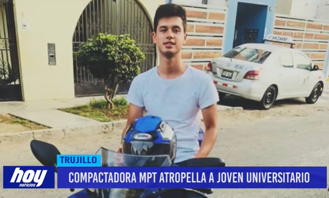 Según la familia de un joven universitario, el chofer de este camión compactador de basura consignado con el número once y que recientemente fue adquirido por la municipalidad de Trujillo lo habría atropellado cuando se disponía a acudir a su centro de estudios.