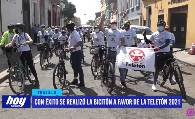 Ciudadanos participaron de una bicitón, actividad que tuvo como fin recaudar fondos para ayudar a los niños y niñas de la clínica San Juan de Dios y de esta manera realizar una importante donación para la Teletón Trujillo 2021, la misma que se realizará este sábado 6 de noviembre de 9 de la mañana a 10 de la noche y que ofrecerá un gran espectáculo en la Plaza Mayor de Trujillo.