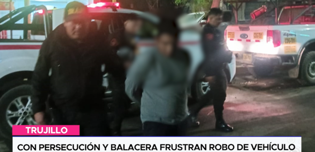 El fin de semana se produjo un intento de robo de un vehículo y terminó en una intensa persecución y balacera en la urbanización Palermo Norte, en Trujillo. Personal del grupo IRAM de seguridad ciudadana de la Municipalidad Provincial de Trujillo, que realizaba patrullaje preventivo por las avenidas César Vallejo y Ricardo Palma, escuchó los disparos y observó a dos sujetos huyendo de la av. Ricardo Palma, seguidos por un tercero armado, quien denunció que los individuos intentaron robarle su camioneta.