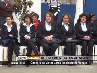 Docentes de Víctor Larco fueron homenajeados por su comuna distrital. En la actividad, el alcalde Carlos Vásquez Llamo aprovechó para opinar acerca de la cuestionada Ley Servir.