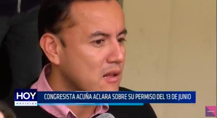Mediante sus redes sociales, el congresista Richard Acuña, insiste en justificar su participación en un acto proselitista. Esta vez presentó el documento con el que solicitó permiso al Congreso para ausentarse de la sesión del pleno del 13 de junio.