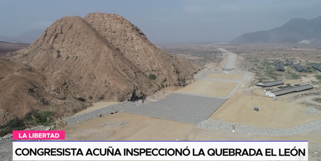 El parlamentario Héctor Acuña en su semana de representación realizó una visita de inspección en la quebrada el León, una obra ejecutada para proteger a la población de la esperanza y Huanchaco contra futuras inundaciones. El congresista Acuña agradeció al responsable de la unidad desconcentrada de La Libertad de la autoridad nacional de infraestructura, así como al gerente del proyecto por su participación en esta actividad.